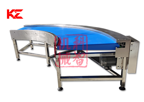 轉彎輸送機采用的形式有:網帶轉彎輸送機、鏈板式轉彎輸送機、皮帶式轉彎輸送機、鏈桿式轉彎輸送機、塑料模塊式轉彎輸送機等。轉彎角度有45度、90度、180度等等。轉彎食品輸送機的寬度和轉彎半徑均可根據需求定做。